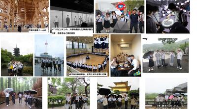 6月9日~11日の3日間、3年生は大阪、京都方面への修学旅行を実施しました。第1日目は大阪万博へ向かい、大屋根ドームで昼食後、クラスごとにNTTパビリオンへ入場。最新技術により、入場時にとった映像をもとに入場者が踊りだす、若返るなどの映像が次々に流れる場面も。第2日目は京都市内を公共交通機関を使用しての班別行動、第3日目は、大型タクシーを使用しての班別行動でした。残念ながら活動中はほとんど雨が降っていましたが、協力し合いながら無事3日間を過ごすことができました。