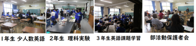 授業参観後には、リモート形式で、PTA本部からの本年度PTA総会議案が可決されたことについて説明がありました。(この内容については、LINEで配信されました)引き続き、部活動保護者会が行われ、部活動担当者から部活動にかかわる方針やルール等について説明があり、その後、各部ごとの保護者会が実施されました。